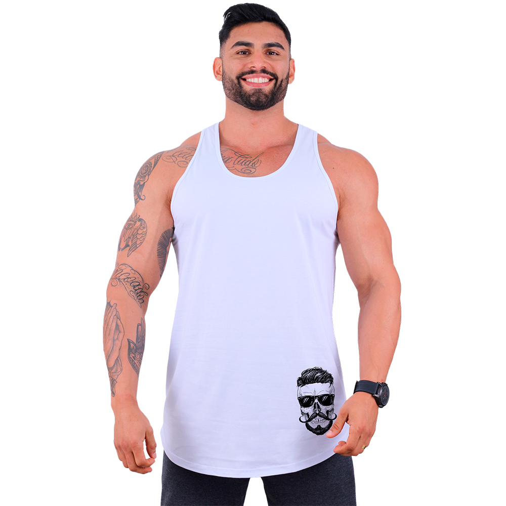 Regata Longline Masculina MXD Conceito Estampa Lateral Caveira Bigode e Topete