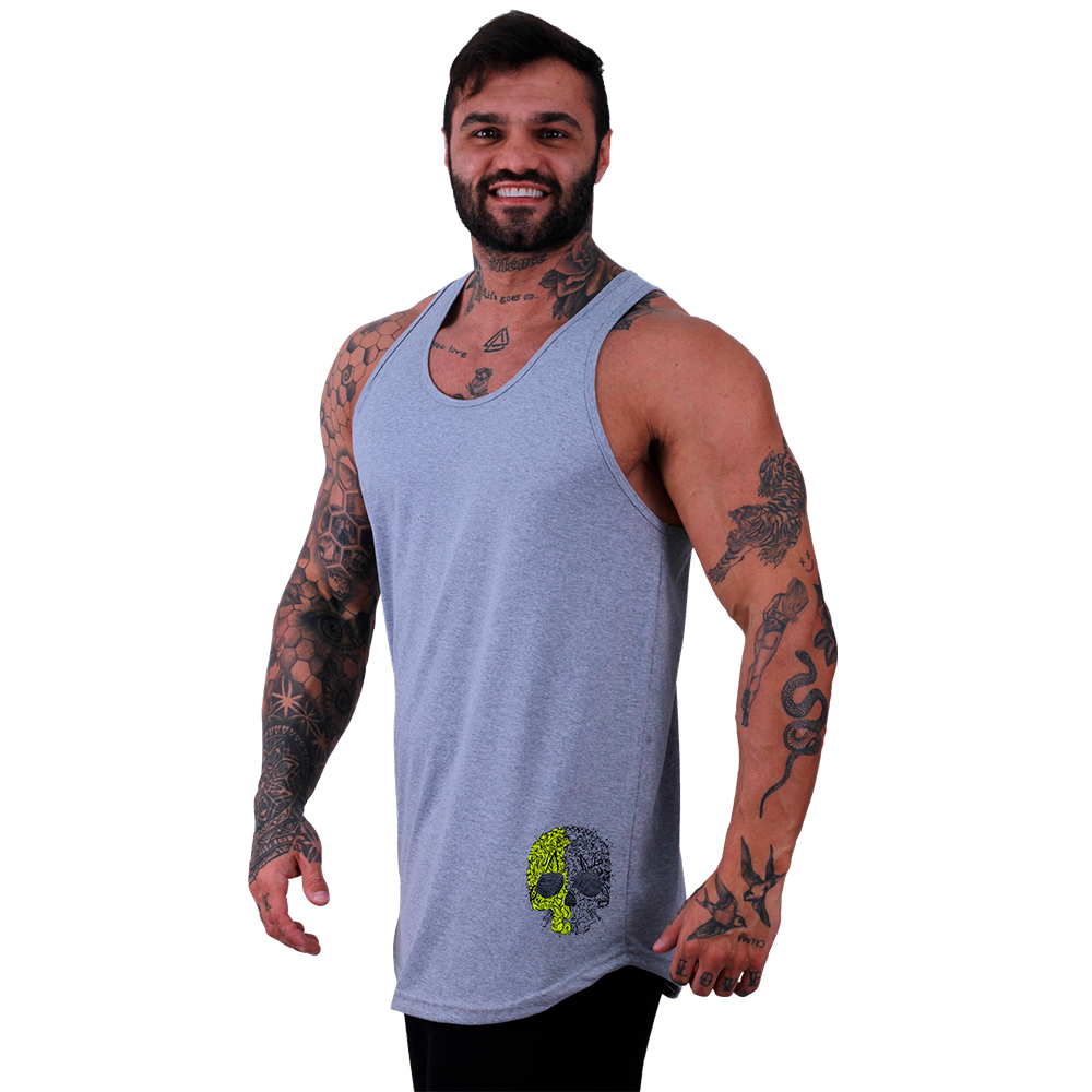 Regata Longline Masculina MXD Conceito Estampa Lateral Caveira Duas Cores